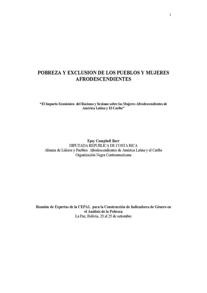 Pobreza y Exclusión de los Pueblos y Mujeres Afrodescendientes