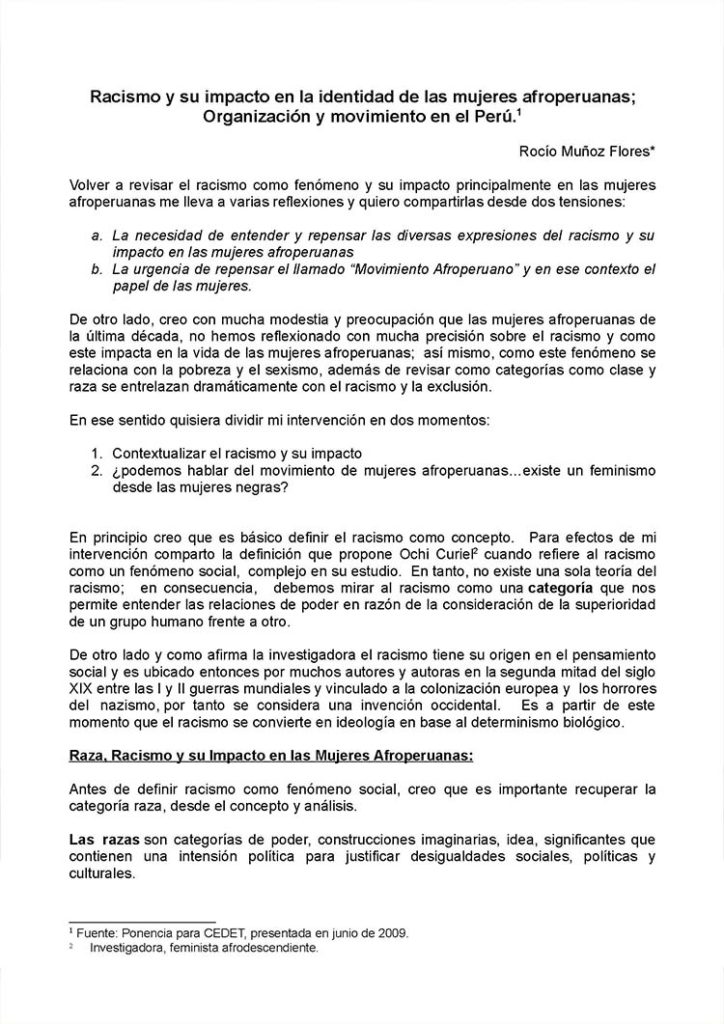 Racismo y su impacto en la identidad de las mujeres afroperuanas; Organización y movimiento en el Perú