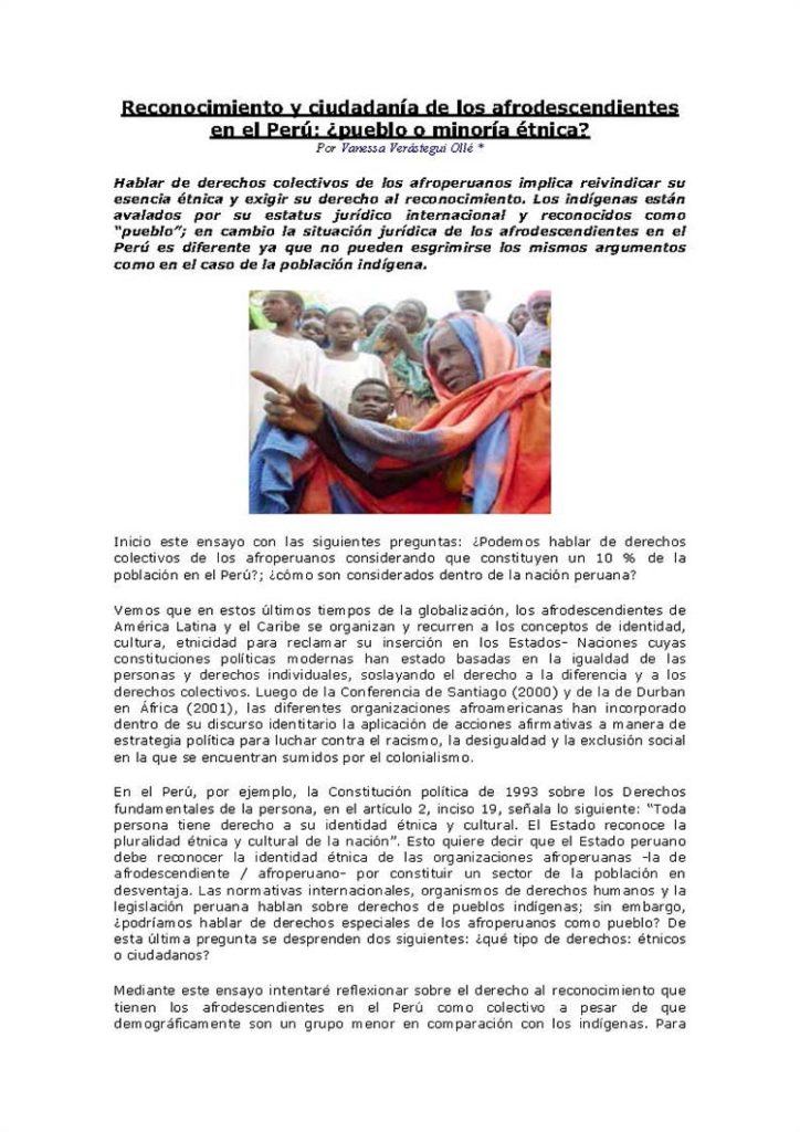 Reconocimiento y Ciudadanía de los Afrodescendientes en el Perú: ¿pueblo o minoría étnica?
